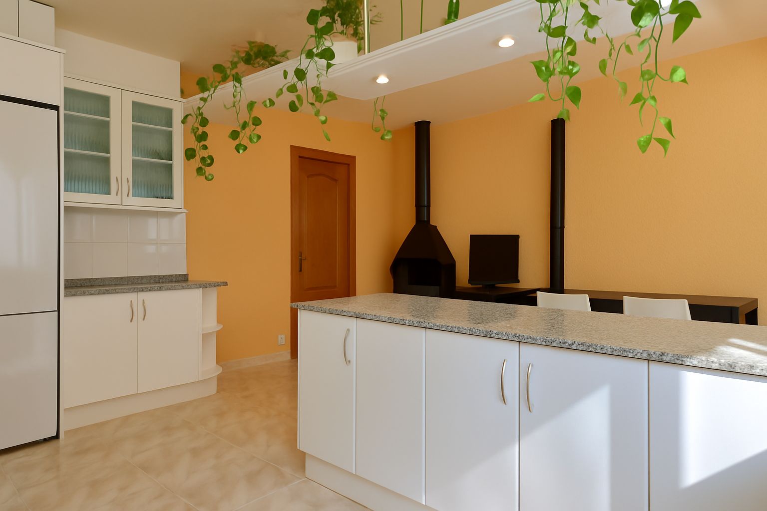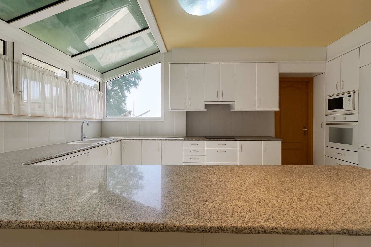 Cocina office con isla y ventanales